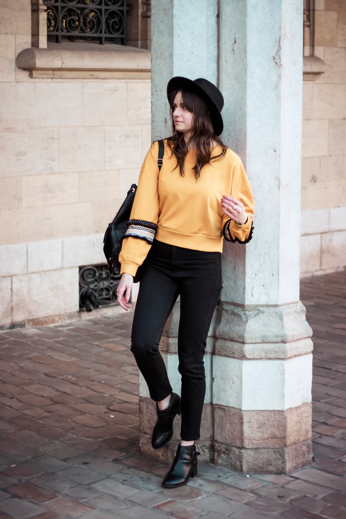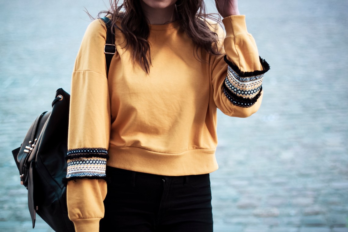 La veille, je suis allée à Lille faire du shopping. J’ai craqué sur des pièces couleur jaune. Comme ce pull au style ethnique.