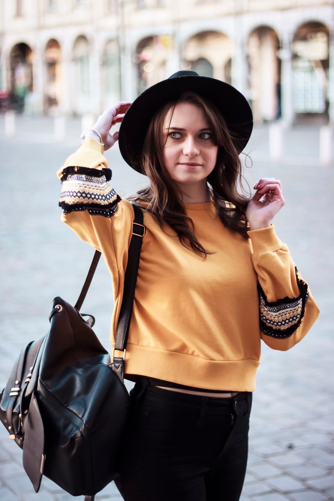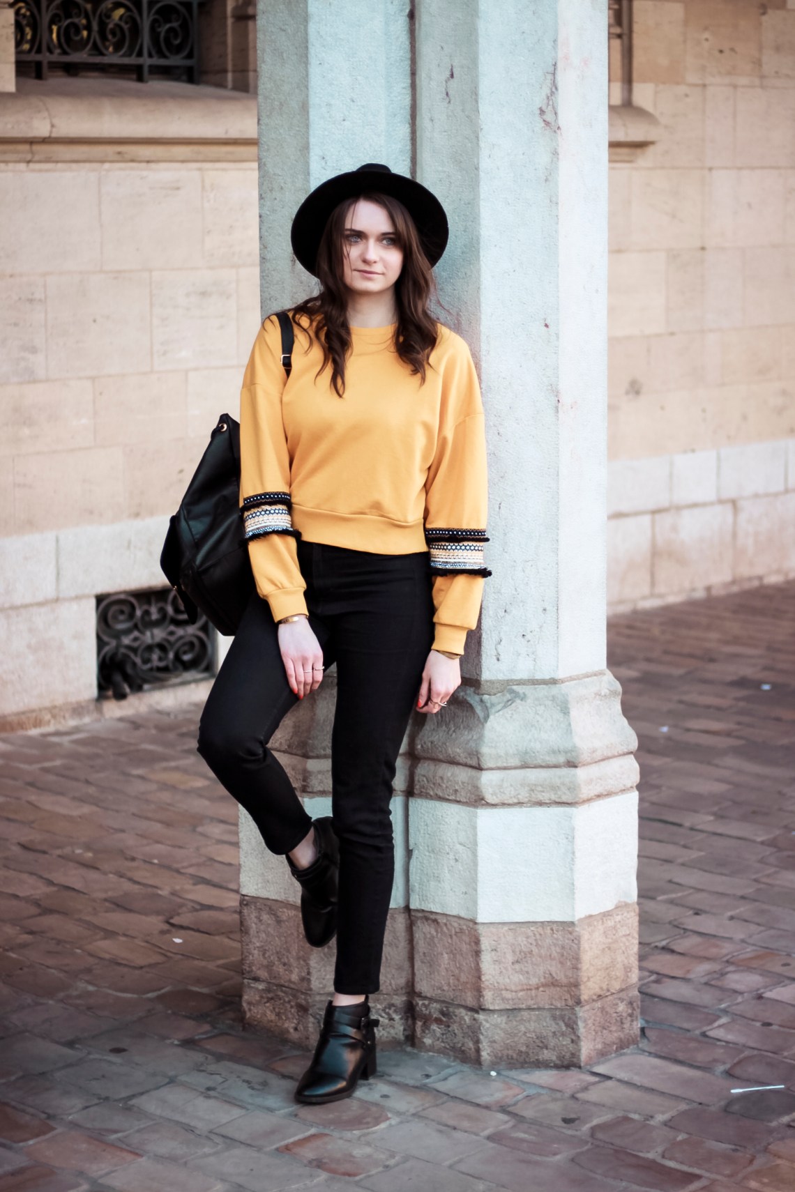 Pull court New Look | Jean noir H&M | Boots Forever 21 (ancienne collection) | Chapeau Pimkie | Sac Primark