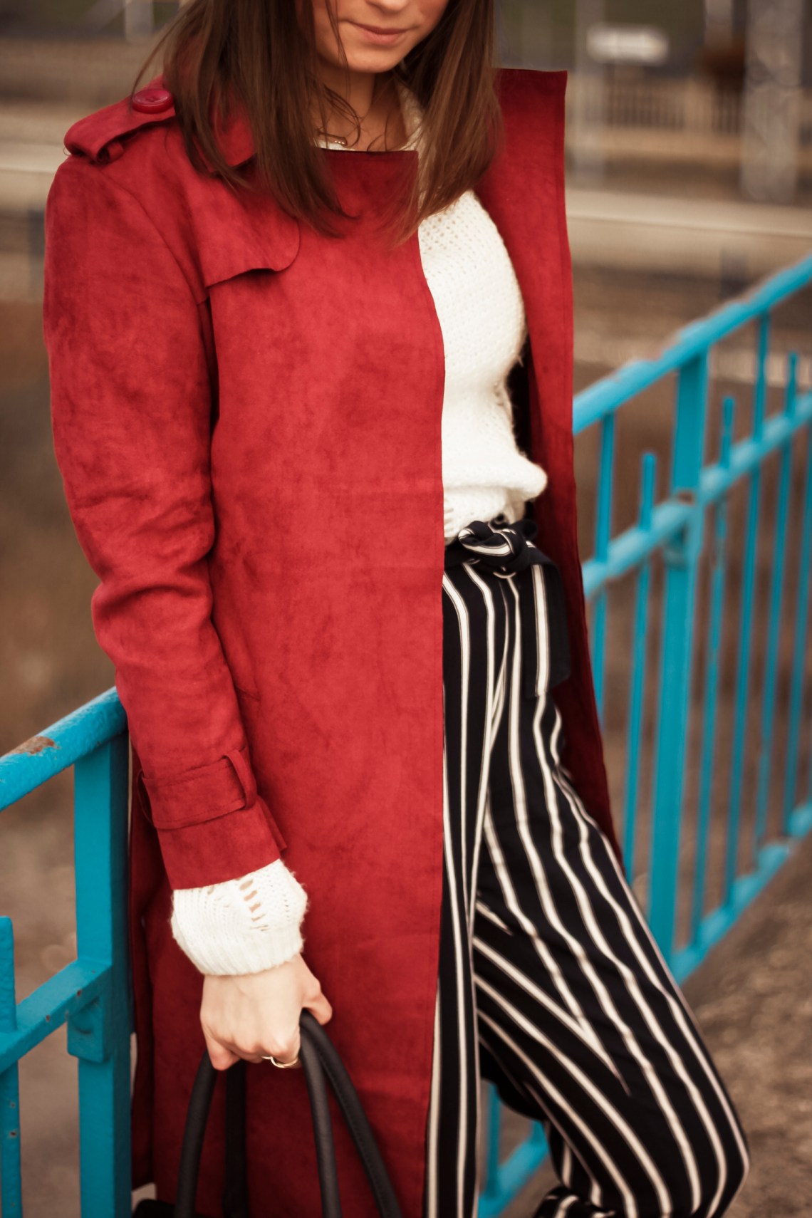 Cette fois, je porte donc un pull et un pantalon à rayures fluide et léger. Il faisait si bon ce week-end. Quel plaisir de prendre des photos sans avoir froid. C’est tellement plus agréable quand on peut prendre son temps. Malheureusement, cela n’a pas duré. Dès lundi, le vent et la pluie étaient au rendez-vous 😦