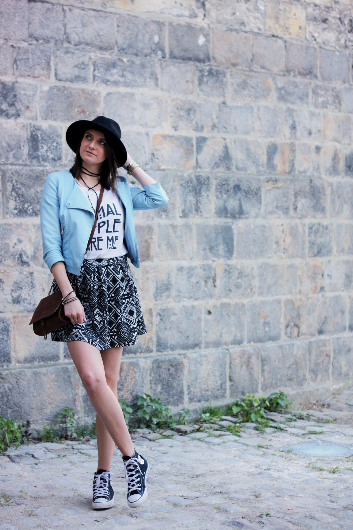 La jupe patineuse imprimée. Je suis très jupe, toujours envie d’en avoir de nouvelles. Pourtant, la robe c’est la simplicité, elle se suffit à elle-même pour faire le look. Les jupes, c’est moins évident finalement.